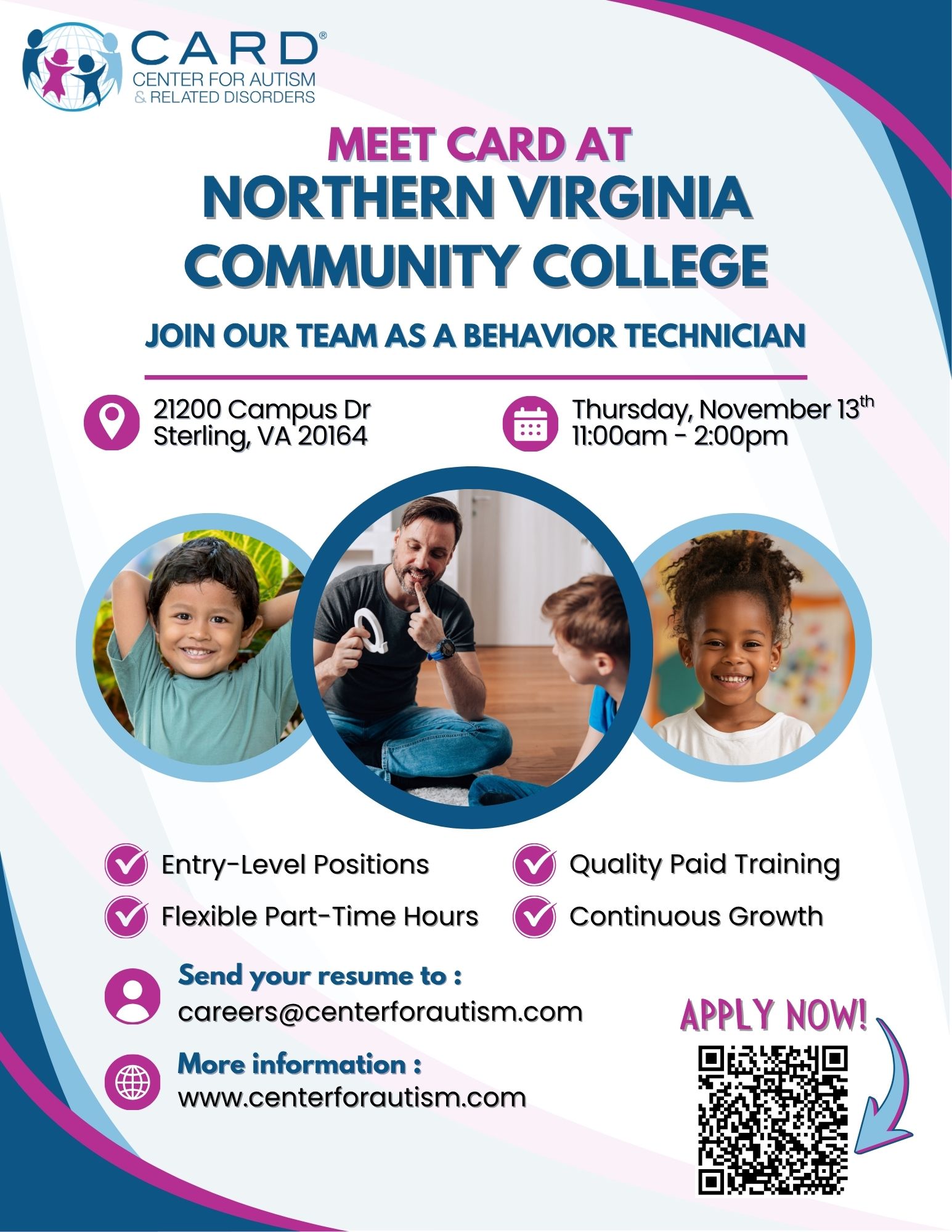 Looking for a career that changes lives? Visit CARD’s table at NOVA (11/13) to learn how you can become a Behavior Technician, no experience needed, full training provided!