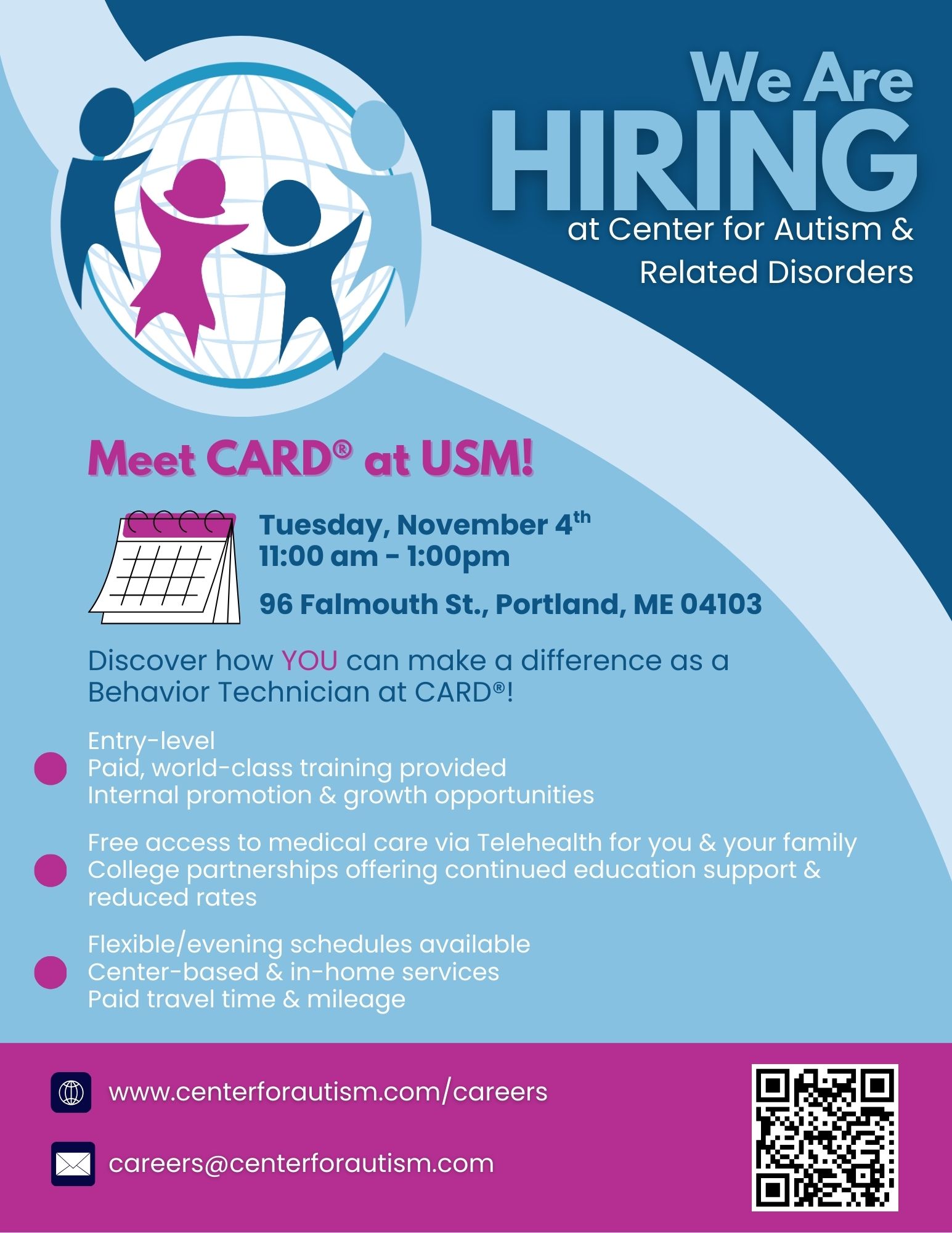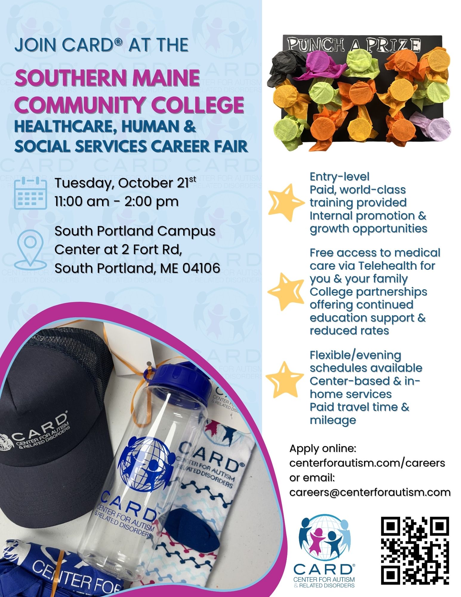 Join CARD at the University of Southern Maine! We’ll be tabling on November 4, 2025 at 11:00 AM to share more about opportunities as a Behavior Technician! ✨ Paid training – no experience needed ✨ Flexible schedules ✨ Grow your career in ABA therapy Stop by, say hi, and see how you can make a […]