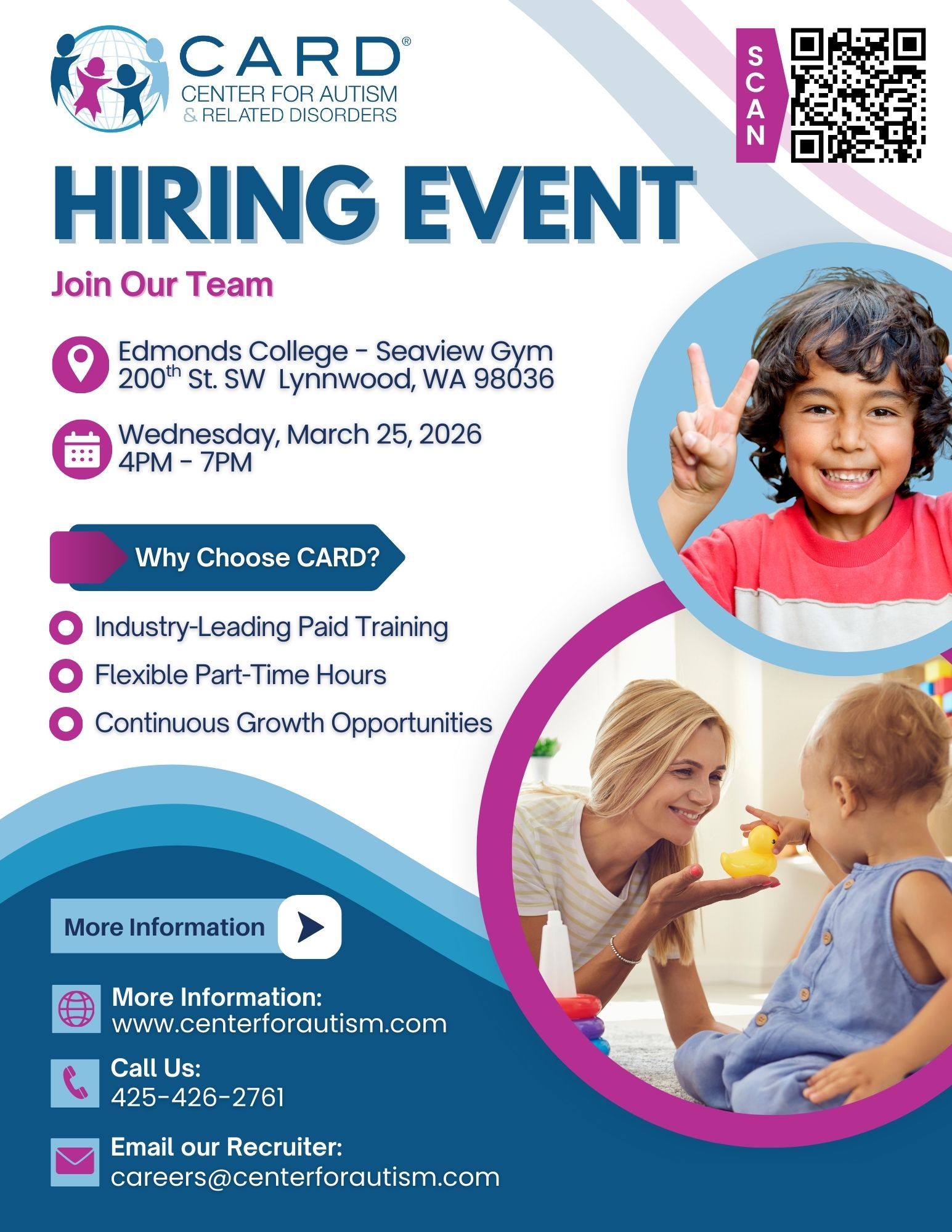 Join CARD at the Lynnwood Regional Job Fair! We’re hiring and can’t wait to meet you! 📍 Edmonds College – Seaview Gym📅 Wednesday, March 25, 2026⏰ 4:00 PM – 7:00 PM Looking for a meaningful career with growth opportunities? CARD offers:💙 Industry-leading paid training⏰ Flexible part-time hours📈 Continuous growth opportunities Stop by our booth to […] |