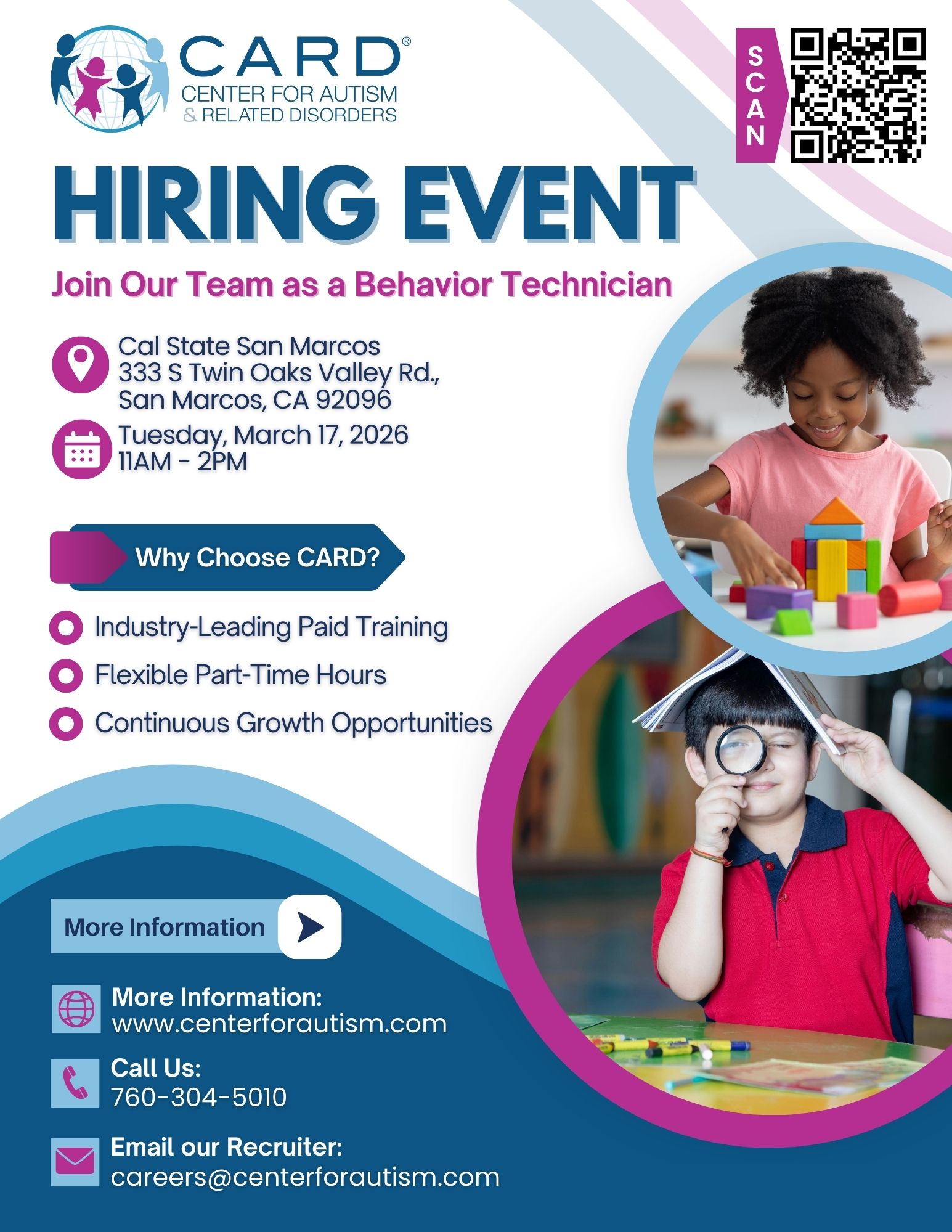 🚨 San Marcos — We’re Hiring! CARD is heading to Cal State San Marcos for a Hiring Event and we’re looking for passionate individuals to join our team as Behavior Technicians! 💙 📍 Cal State San Marcos📅 Tuesday, March 17, 2026⏰ 11AM–2PM If you’re looking for a meaningful career where you can make a real […] |